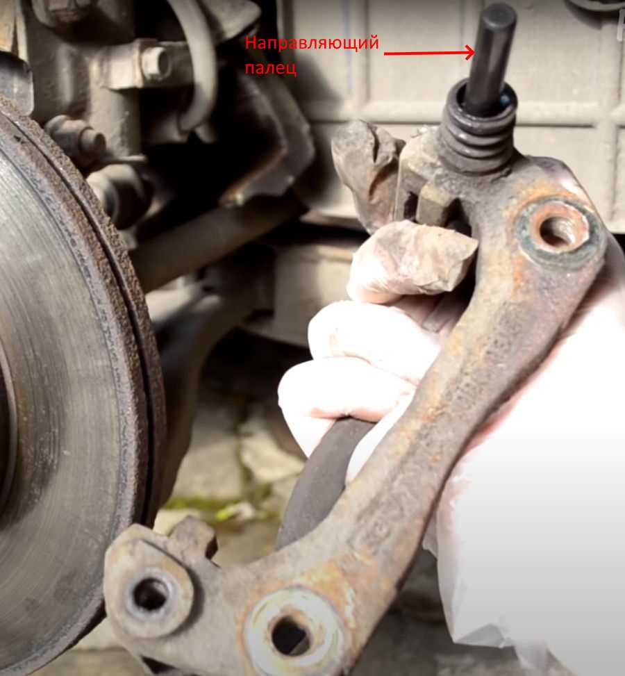 На фото суппорт не устанавливается на место из-за выдвинутого поршня.