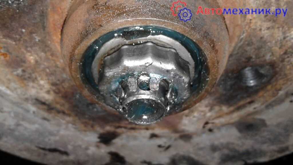 Затем открутил 3 болта, которые держат шаровою (фото нет — неудобно было фоткать) (головка на 13) Несильно постукивая выбил шлиц гранаты и снял ступицу