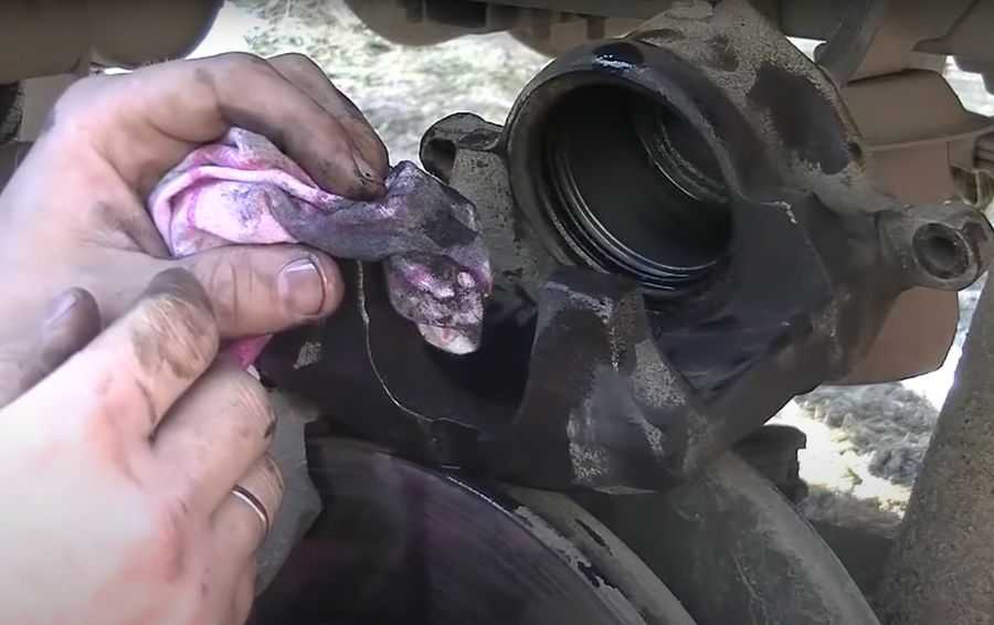 Хорошо очищаем все канавки, где стоят резиновые кольца и пыльник. Суппорт внутри протираем чистой тряпкой.