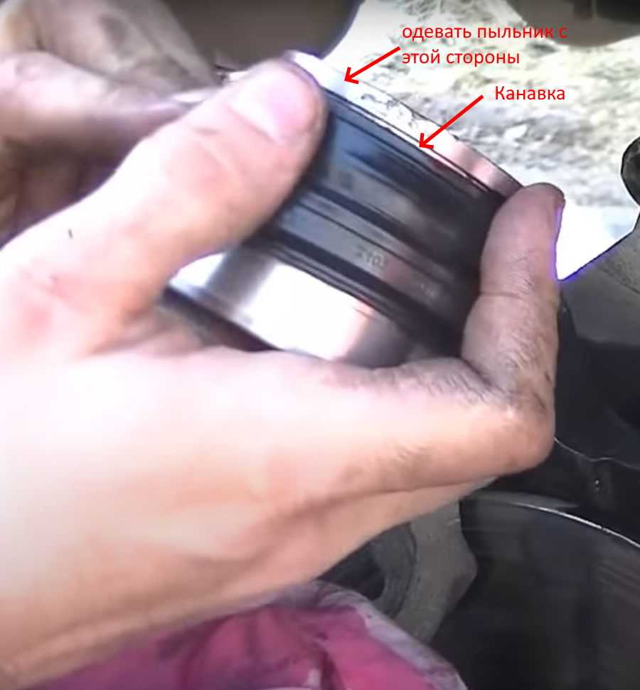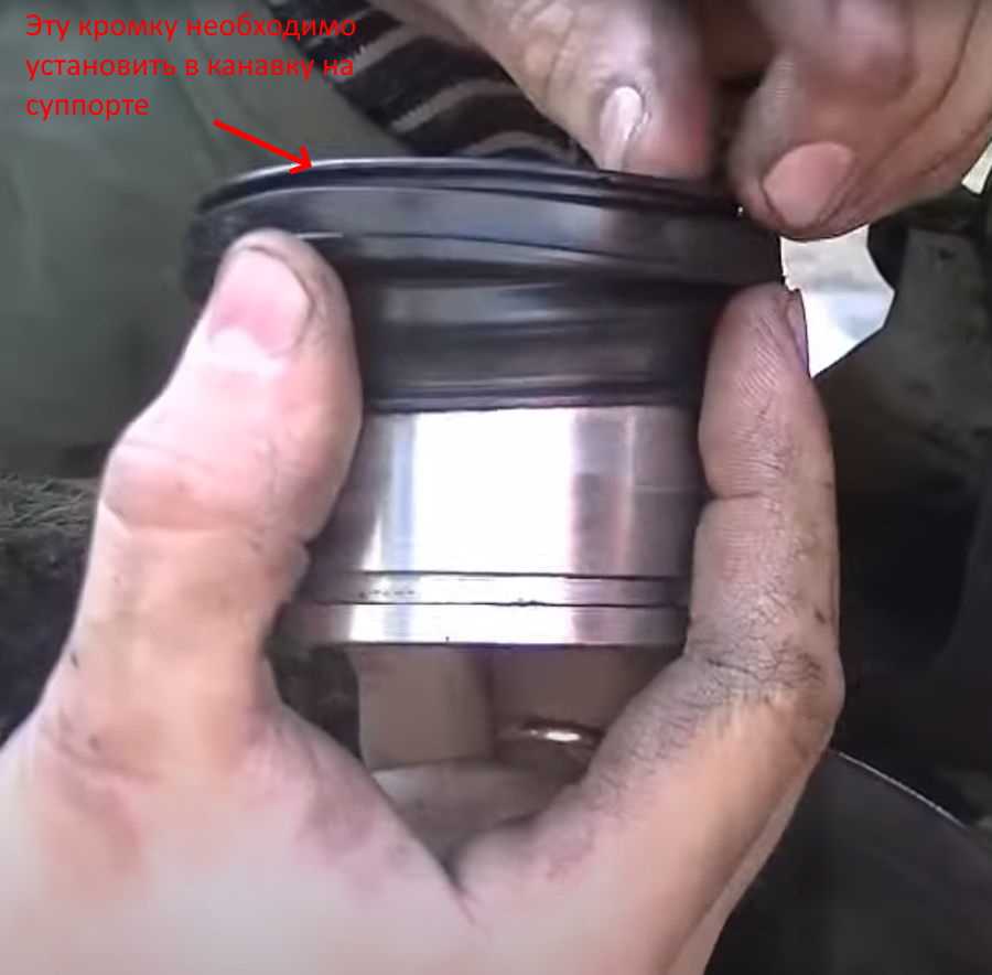 Теперь засовываем кромку пыльника в канавку на суппорте. Это довольно сложно, но возможно