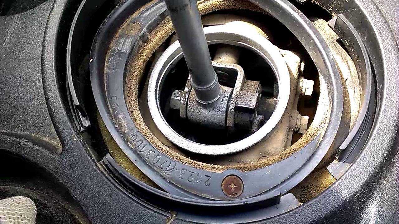 11. Вытянув шланг из-под сиденья, сливаем жидкость в емкость