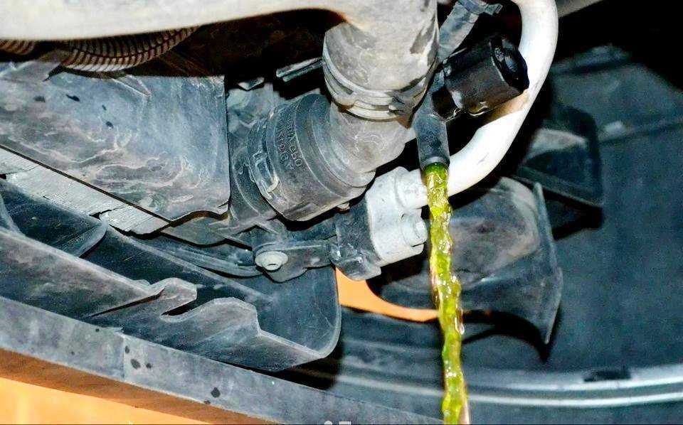- полностью слить старый антифриз из системы и радиатора — открыв краник или сливную пробку в нижней части автомобиля (чтобы жидкость вытекла быстрее, надо открыть крышку расширительного бачка);