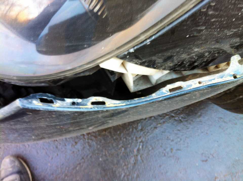 - Одним умеренно резким движением необходимо оторвать бампер от одного крыла, а затем и от другого. Деталь может держаться на заклепках туго. Их необходимо аккуратно отжать до характерного щелчка.