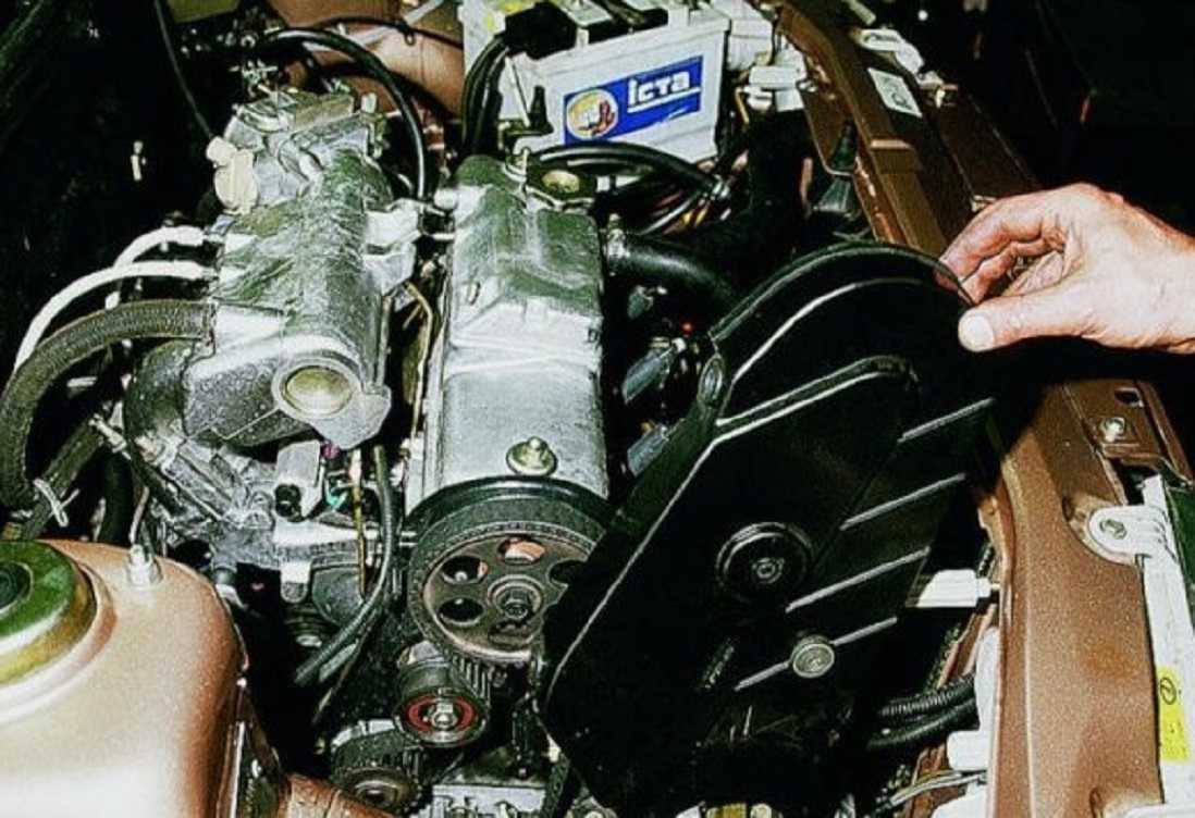 - Под капотом открутить болты крепления защитного кожуха ремня ГРМ. Ослабить крепление генератора и снять приводной ремень генератора.