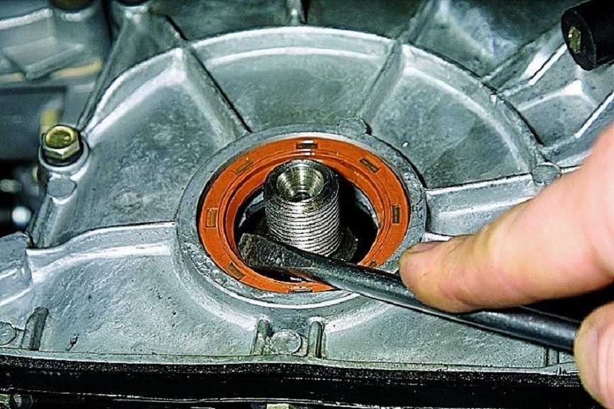 - Сальник из посадочного места демонтировать плоской отверткой или аккуратно выдавить головкой подходящего размера.