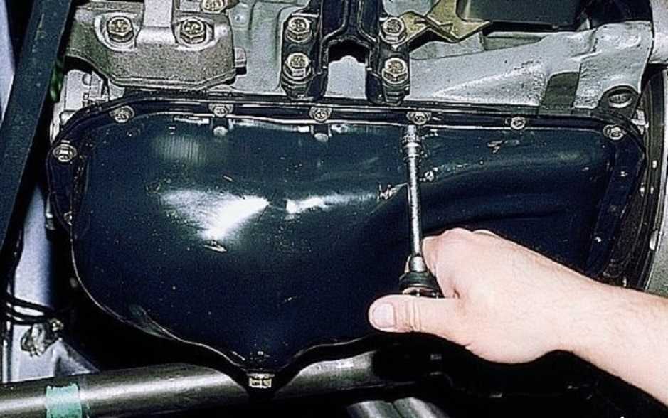 - Демонтируйте поддон двигателя, крепящегося на 16-ти болтах.