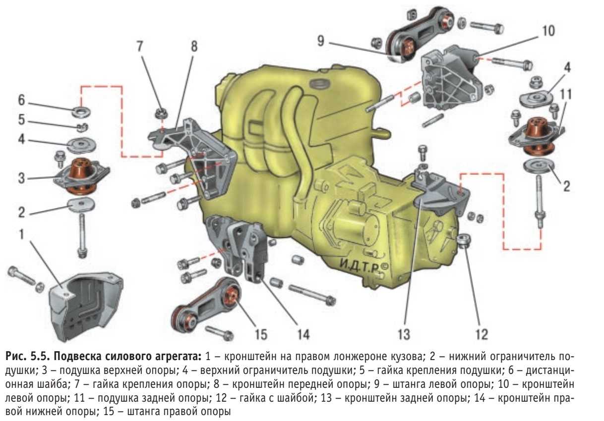 | Болт крепления кронштейна передней опоры подвески к двигателю | М10х1,25 | 32,2-51,9 (3,3-5,5) |