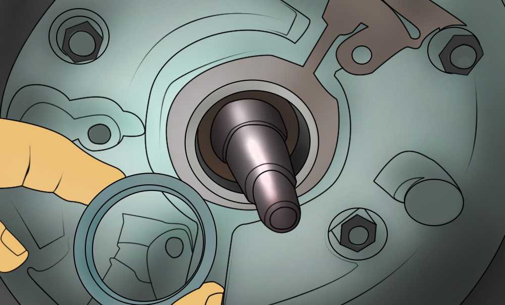 | 2. | Установите сальник на место, аккуратно проталкивая его до упора. Убедитесь, что сальник установлен ровно и не наклонен. |