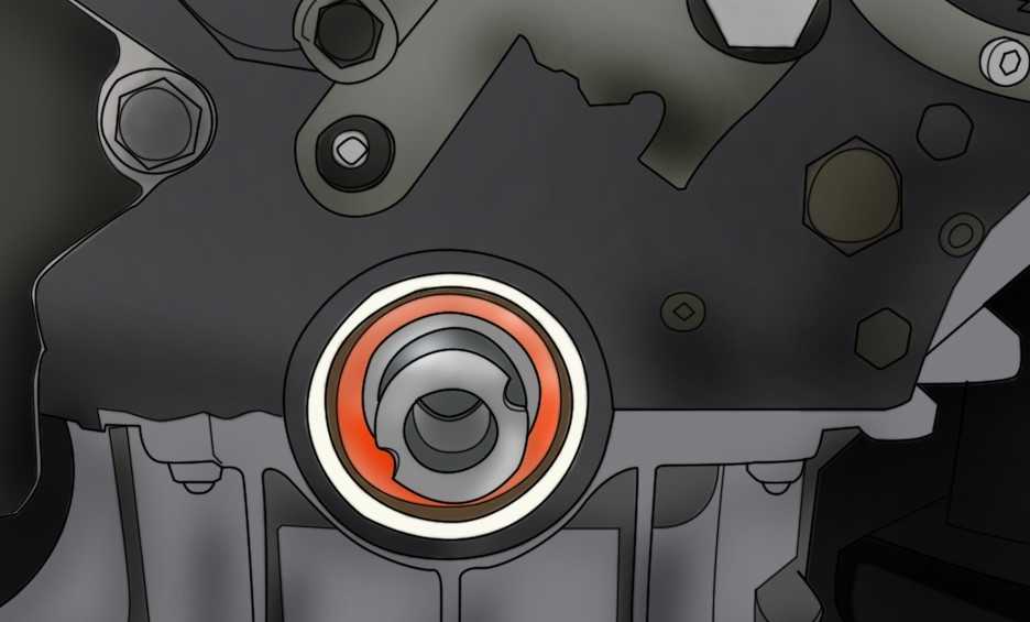 | 5. | Убедитесь, что сальник находится вровень с поверхностью корпуса двигателя. |