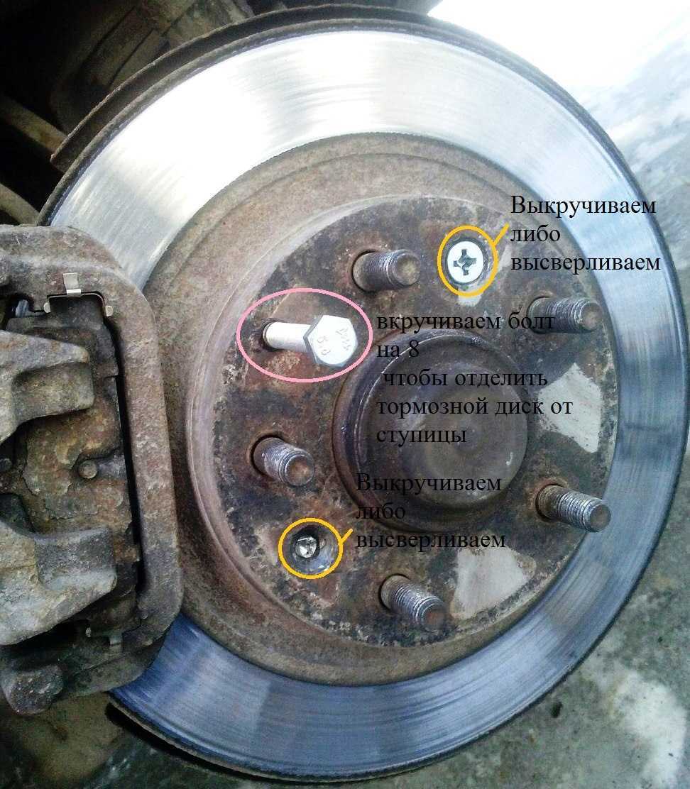 Если вам необходимо снять ступицу переднего колеса, вы должны знать, что сначала снимаются сами колеса. Далее, с поворотного кулака нужно демонтировать датчик, а со стойки следует произвести снятие стопорной пластины. Теперь можно выкрутить болты крепления из кронштейна суппорта.