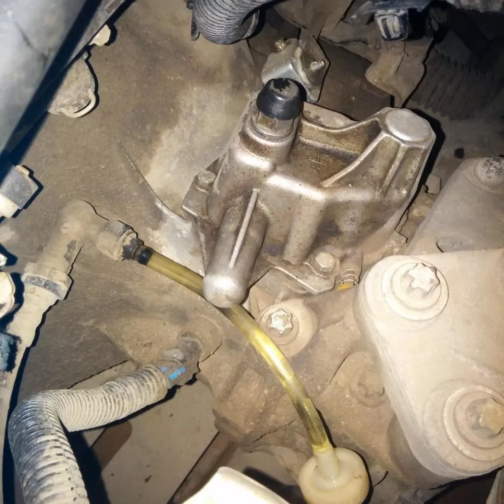 Самому выполнить процедуру сложно, потому что нужно сливать отработку и с гидротрансформатора, имеющего много труднодоступных ниш. Чтобы выгнать отсюда масло, надо после заправки коробки свежим составом вывернуть подающий шланг с гидравлического устройства. Потом запустить двигатель и дать ему поработать минут 10, чтобы выгнать старую жидкость.