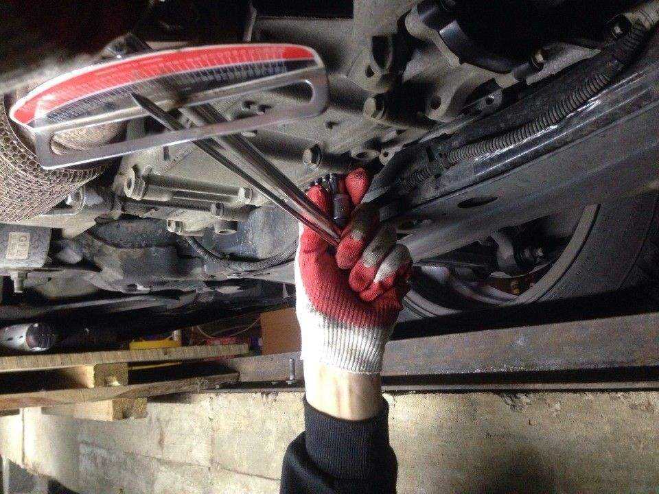 - демонтировать защитные элементы с АКПП, чтобы получить доступ к контрольному и сливному отверстиям;