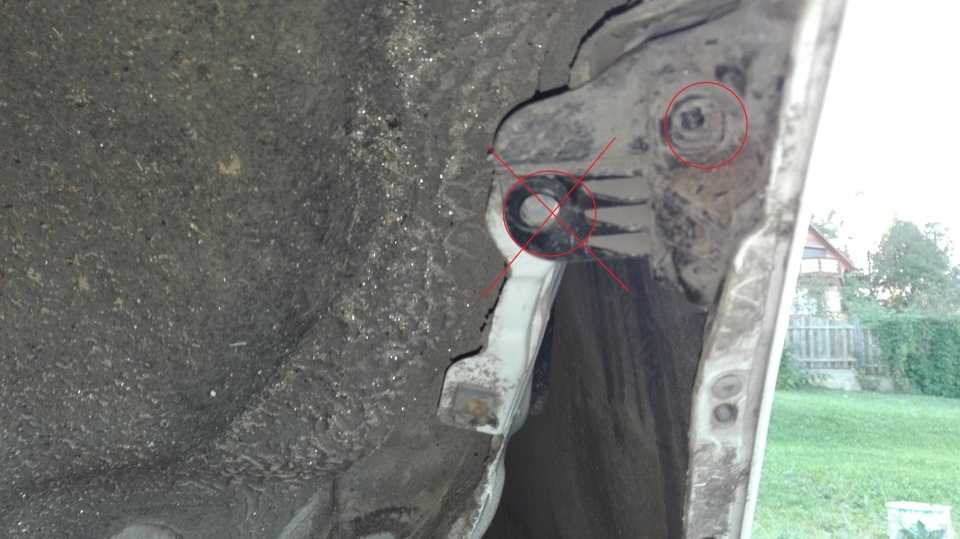 После того как мы снимем этот «полуподкрылок»-«брызговик», нужно открутить крепления бампера см. фотомоя ошибка была в том, что я открутил не тот болт, поскольку болт скрывался под хорошем слоем грязи:( смотрим фото:
