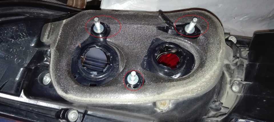 - Снятие задних фонарей путём откручивания трёх болтов на каждом из багажника.