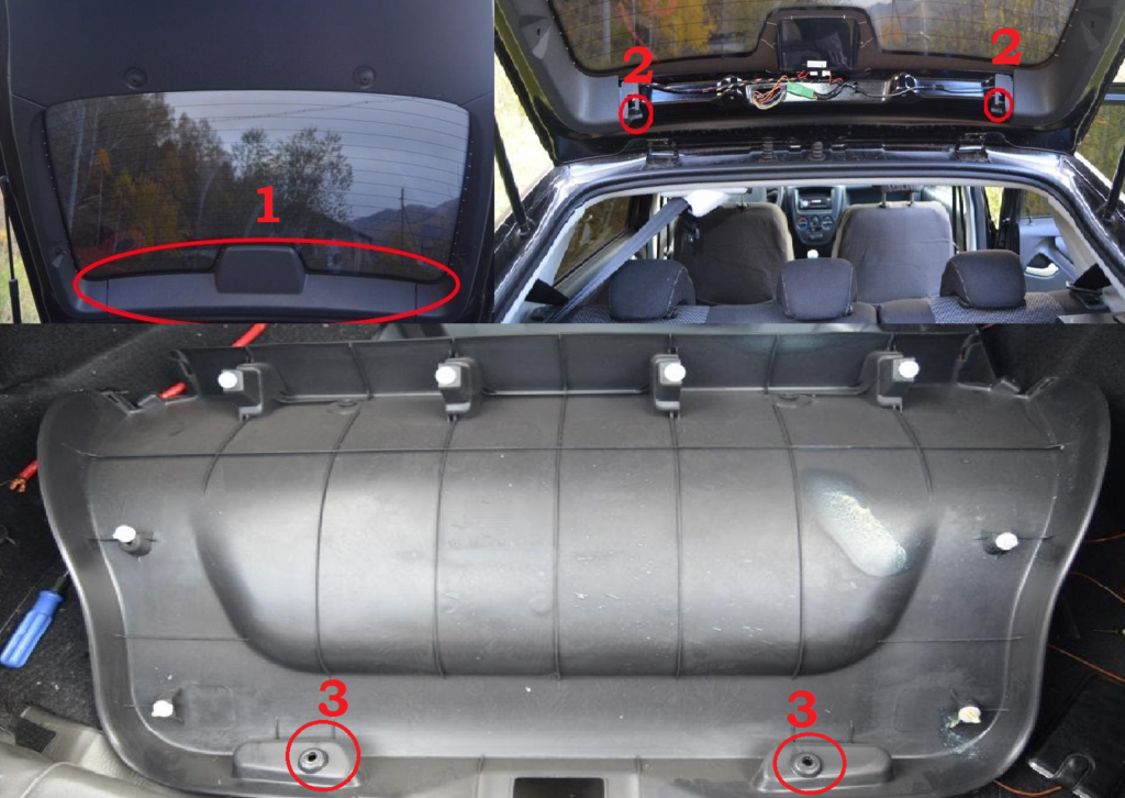 Может потребоваться снятие боковых отделочных элементов, обшивки багажной двери или всех деталей сразу. Для работы потребуется тот же инструмент и клипсы, что и для удаления дверных обшивок салона.